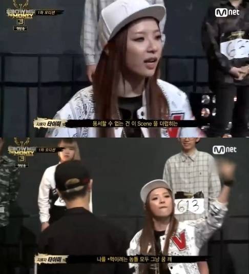 '쇼미더머니3'에 출연한 여성 래퍼 타이미가 알고 보니 속사포랩으로 유명한 이비아였다.지난 3일 첫 방송된 Mnet '쇼미더머니3'에서는 1차 예선 현장이 공개된 가운데 수많은 여성 래퍼들이 대거 등장해 눈길을 끌었다.이날 타이미는 심사위원들 앞에서 주눅 들지 않고 랩을 선보였고, 산이는 타이미에게 합격 목걸이를 걸어줬다. 이에 타이미는 "방금 보셨지 않냐? 적수가 없다"며 자신만만한 태도를 보였다.특히, 타이미는 2009년 데뷔앨범을 발표하고 '이비아'라는 이름으로 활동했던 래퍼. 빠른 속사포 랩으로 '여자 아웃사이더'라고 불리며 유명세를 치른 바 있다.타이미는 지난해 아웃사이더를 필두로 한 아싸커뮤니케이션에 새롭게 둥지를 틀고 타이미라는 이름으로 활동을 재개하기도 했다.'쇼미더머니3' 방송을 접한 네티즌들은 "쇼미더머니3 타이미가 이비아였구나", "타이미 이비아로 왜 이름을 바꾼 거야?", "쇼미더머니3 타이미 앞으로 기대된다", "타이미 어쩐지 낯설지가 않았다", "쇼미더머니3 타이미 참가이유가 궁금해" 등의 반응을 보였다.[쇼미더머니3 타이미, 사진=Mnet '쇼미더머니3' 방송 캡처]