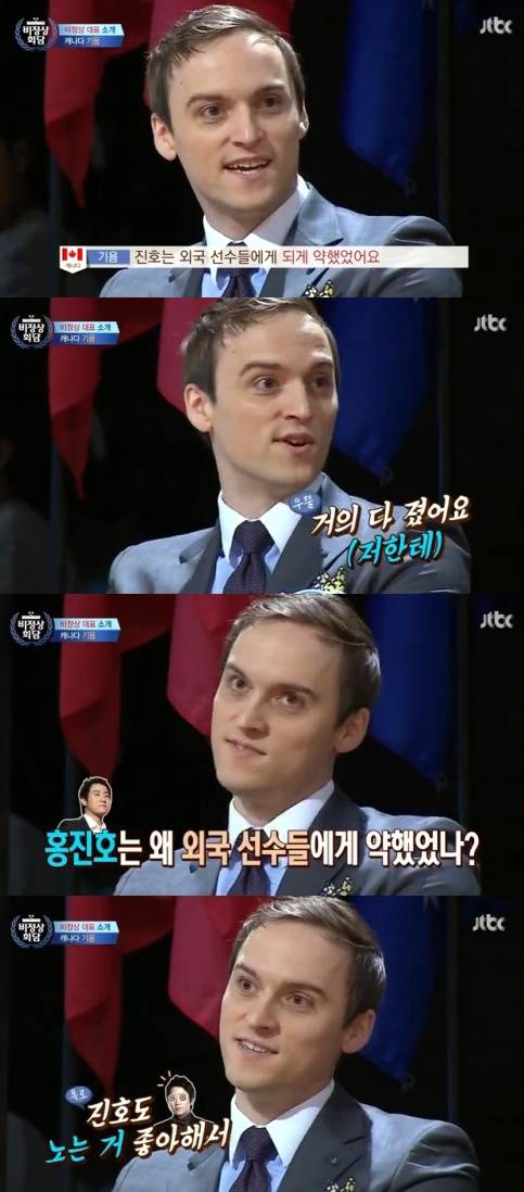'비정상회담' 기욤패트리(33)가 2000년대 온라인 게임 스타크래프트의 라이벌이었던 홍진호를 언급했다.기욤패트리는 지난 7일 방송된 JTBC '비정상회담'에 출연해 "홍진호가 외국인 선수에게 되게 약했다. 내게 거의 졌다"고 밝혔다.이어 홍진호가 외국인 선수들에게 약했던 이유를 묻자 기욤패트리는 "글쎄요. 홍진호도 노는 걸 좋아해서.."라고 답해 웃음을 자아냈다.한편, 캐나다 출신인 기욤 패트리는 1998년 온라인 게임 스타크래프트에서 뛰어난 실력으로 이름을 알린 전설적인 프로 게이머다.['비정상회담' 기욤패트리, 사진=JTBC '비정상회담' 방송 캡처]