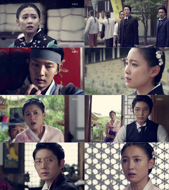 이날 방송에서는 자신의 정체를 드러낼 수 없는 박윤강(이준기)과 그런 도련님을 도련님이라 부르지 못하는 정수인(남상미)의 애달픈 사랑이 시작됐다. 3년 만에 복수의 칼을 품고 일본인 한조로 조선 땅을 밟은 윤강. 정갈한 양복과 검은 구두, 햇빛에 반짝이는 금테 안경, 무례한 태도 등으로 완벽하게 신분을 위장했지만 그를 알아본 이가 있었으니 바로 정수인(남상미)이었다.
