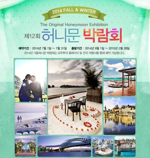 2014년 Fall & Winter시즌인 9월 1일부터 내년 2월 28일까지 출발하는 예비신혼부부를 대상으로 진행되는 모두투어의 온라인 허니문 박람회로 모두투어홈페이지(www.modetour.com)및 전국 여행사를 통해 예약 가능하다.