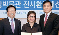 [사진 왼쪽부터 이인용 삼성전자 커뮤니케이션팀 사장, 김영나 국립중앙박물관 관장, 김정태 국립중앙박물관회 회장ⓒ삼성전자 제공]국립중앙박물관(관장 김영나)은 박물관내 전시실 조명환경 개선을 위해 ㈜삼성전자, 사단법인 국립중앙박물관회와 10일 박물관에서 협약식을 개최했다.협약식에는 김영나 관장과 박물관회 김정태 회장, 그리고 삼성전자 커뮤니케이션 팀장인 이인용 사장이 참석했으며, 이번 협약을 통해 삼성전자는 향후 3년간 30억원을 후원해 박물관 전시실 조명환경을 개선한다.박물관 측은 "국립중앙박물관이 용산에서 새로 개관한 후 8년이 경과하는 동안 꾸준히 전시실 리노베이션 사업을 진행했지만 충분한 예산을 확보하지 못해 개선에 어려움이 있었다"며, "이번에 삼성전자가 조명개선사업을 후원하게 됨으로써 한결 나은 관람환경을 조성할 수 있게 됐다"고 밝혔다.조명개선사업은 올해 하반기에 시작해 2016년까지 매년 10억원씩을 들여 진행한다. 진열장을 비추는 천장조명시설은 새롭게 설치되고 조명에 걸맞는 진열장도 새로 제작한다.삼성전자 후원금은 문화예술위원회 지정기부금 형식을 통해 국립중앙박물관회로 전달돼 집행된다.