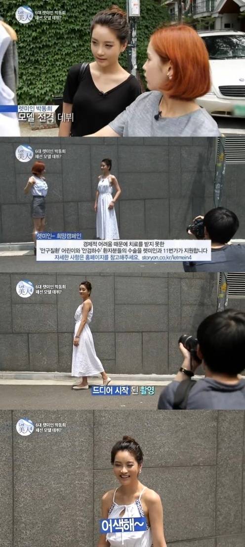 '렛미인' 박동희가 허예은의 쇼핑몰 모델로 발탁됐다.지난 10일 방송된 스토리온 '렛미인4' 7화에서는 거대한 잇몸녀 박동희 씨가 출연해 시즌2 허예은, 시즌3 최지혜를 잇는 미모의 렛미인으로 거듭났다.박동희는 키 181cm로 보통의 여성보다 신장이 크다는 이유로 '프랑켄슈타인' '진격의 거인' 등으로 놀림 받았다. 웃을 때 15mm이상 노출되는 잇몸과 부러진 채 10년 이상 방치한 치아, 부정교합이 외관상은 물론 기능적으로도 심각한 수준이었다.렛미인에 선정된 박동희 씨는 77일간 체계적인 변화과정을 겪은 후 역대급 여신으로 인정받을 만큼 모델 비주얼로 변신해 모두를 놀라게 했다.특히, 박동희 씨는 모델이라는 자신의 꿈을 위해 운동선수 출신 모델 이혜정에게 개인교습 받았고, 노력 끝에 허예은이 운영하고 있는 쇼핑몰 모델로 발탁돼 화보촬영에 나섰다.'렛미인' 방송을 접한 네티즌들은 "렛미인 허예은 박동희 역대급 변신녀들의 만남", "렛미인 박동희 꿈 이뤄서 축하한다", "박동희 허예은 쇼핑몰 모델 데뷔 훈훈해", "렛미인 박동희 볼수록 놀랍다", "렛미인 박동희 모델 포스 물씬~" 등의 반응을 보였다.[렛미인 박동희, 사진=스토리온 '렛미인4' 방송 캡처]