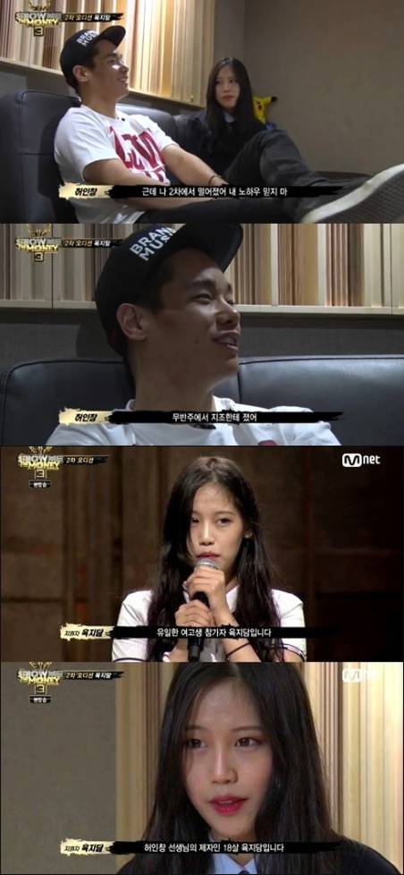 18세 여고생 래퍼 육지담이 지난 시즌2에 출연했던 래퍼 허인창의 제자로 밝혀졌다.육지담은 지난 10일 방송된 Mnet '쇼미더머니3' 1인 단독 오디션에서 뛰어난 실력을 과시하며 2차 예선을 통과했다.육지담은 "쇼미더머니2를 보고 무작정 허인창을 찾아가 랩을 배웠다"고 밝혔다. 이날 육지담은 가녀린 겉모습과는 달리 공격적이고 폭발적인 랩을 선보였다.심사위원 마스타 우는 "MC로서 살벌할 것 같다. 죽여준다는 얘기다"라고 칭찬했으며, 육지담은 프로듀서 4팀 전원의 인정을 받으며 2차예선을 가볍게 통과했다.육지담의 랩 스승 '허인창'은 "육지담의 첫인상은 곱상하게 생긴 연예인 지망생 같았다. 솔직히 몇 달 하다가 그만둘 줄 알았는데 지독하게 연습했다"고 말했다.허인창은 "사실 지담이에게 시즌3는 경험상 나가보고 시즌4를 준비하자고 했었다. 지담이가 기대 이상으로 2차예선에까지 합격해 무척 기쁘다. '쇼미더머니'에서 지담이의 잠재력이 잘 표출됐으면 좋겠다"고 덧붙였다.[육지담 허인창 제자, 사진=Mnet '쇼미더머니3' 방송 캡처]
