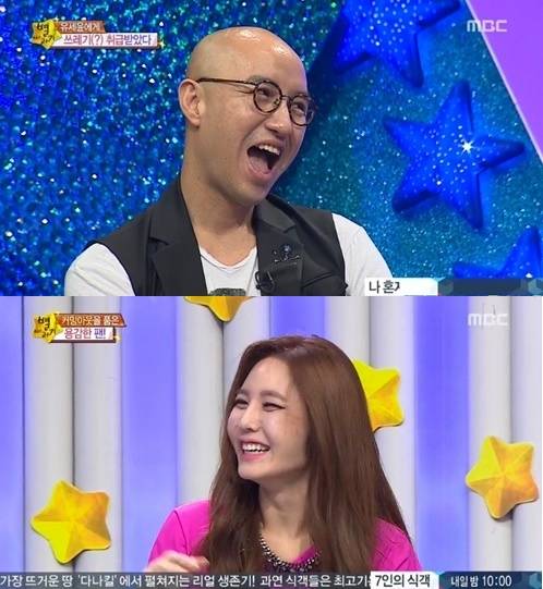 홍석천이 강예빈의 전 남자친구를 언급했다.지난 10일 방송된 MBC '별바라기'에서는 '나는 남자 팬이다' 특집으로 꾸며진 가운데 류현경, 강예빈, 홍석천, 유세윤 등이 출연해 솔직한 입담을 뽐냈다.이날 강예빈은 해외 공연 스케줄로 녹화에 불참한 샤이니 키 대신 임시 패널로 등장했다. 이에 홍석천은 "저 분과 내 이상형이 겹친다"며 못마땅한 표정을 지었다.이어 홍석천은 "저번에 강예빈이 내가 운영하는 가게에 남자친구랑 함께 밥을 먹으러 왔는데 딱 내 이상형이었다"고 폭로해 이목을 끌었다.방송을 접한 네티즌들은 "홍석천 강예빈 폭로 대박!", "강예빈 남자친구 궁금해", "강예빈 열애 중?", "홍석천 마녀사냥에 이어 여기저기 들이대네", "홍석천 강예빈 폭로 혹시 유상무는 아니겠지" 등의 반응을 보였다.[홍석천 강예빈, 사진=MBC '별바라기' 방송 캡처]