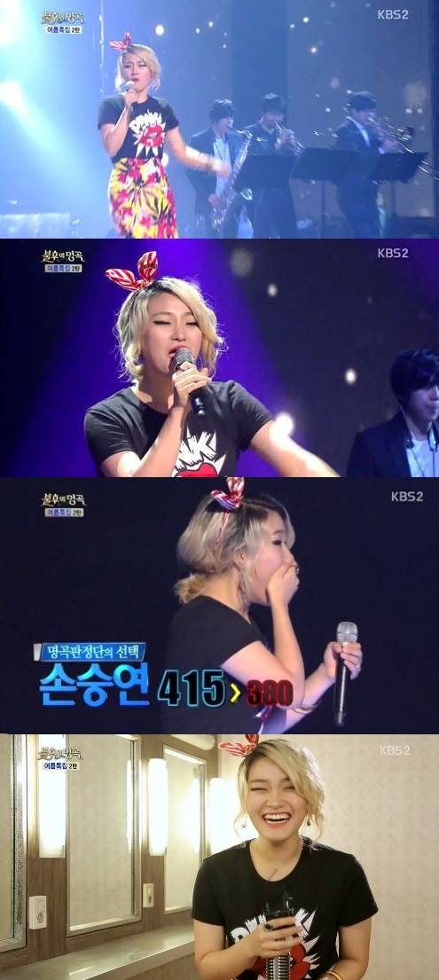 이날 손승연은 이용의 '바람이려오'를 선곡해 폭발적인 가창력으로 무대를 압도했다. 손승연은 명곡판정단으로부터 415표를 받아 4연승의 홍경민을 제치고 최종 우승 트로피를 머머쥐었다