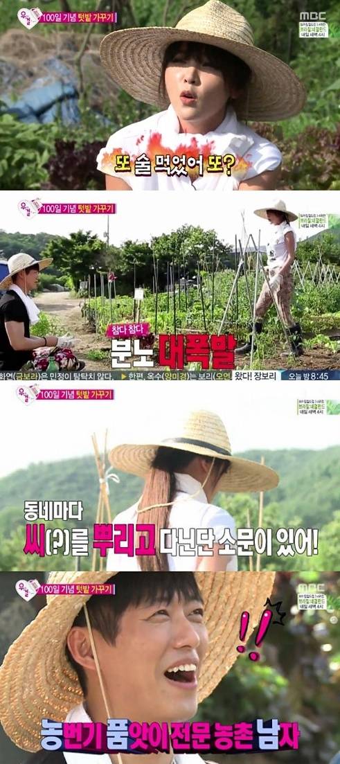 '우리결혼했어요' 홍진영 남궁민에 거침없는 19금 발언을 던졌다.지난 12일 방송된 MBC '우리 결혼했어요 시즌4'에서 홍진영 남궁민 커플은 100일 기념 텃밭 가꾸기에 나선 가운데 상황극을 연출해 눈길을 끌었다.이날 홍진영은 남궁민에게 술주정뱅이에 바람까지 피는 난봉꾼 남편 역할을 제안했고, 남궁민은 그 역할에 푹 빠지며 홍진영에게 "일해! 뭘 봐!"라고 버럭 화를 냈다.이에 '우리결혼했어요' 홍진영은 "또 술먹었냐! 어제 어디 있었어? 김씨네 뽕밭에는 왜 갔어?"라고 상황극에 몰입했다. 이어 홍진영은 "동네방네 씨를 뿌리고 다닌다는 소문이 있어. 기분 나빠!"라고 말해 남궁민을 당황하게 만들었다.'우리결혼했어요' 홍진영의 19금 발언에 남궁민은 "씨를 뿌린다니.."라고 황당함을 감추지 못했다. 홍진영은 "그러니까 남의 밭에 씨를 잘 뿌리고 다닌다는 소문이 있다"고 해명해 웃음을 자아냈다.[우리결혼했어요 홍진영, 사진=MBC '우리 결혼했어요' 방송 캡처]