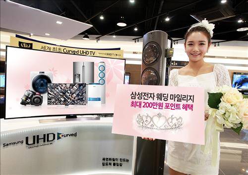 삼성전자는 이달부터 혼수를 준비하는 예비부부를 대상으로 웨딩 마일리지 행사를 한다고 13일 밝혔다.3개월간 삼성 디지털프라자 혼수전문점에서 구매한 제품 금액과 삼성카드 사용 실적에 따라 디지털프라자에서 현금처럼 사용할 수 있는 최대 200만원의 포인트를 제공하는 프로그램이다.또 제품 구매 금액별 바우처 쿠폰과 혼수 패키지 적립 포인트를 제공하고 청첩장 비용 할인 등의 부가 혜택도 있다.친구 추천 쿠폰도 제공한다. 쿠폰을 받은 사람이 디지털프라자에서 300만원 이상 구매하면 해당 고객과 친구 모두에게 최대 30만원의 바우처 쿠폰을 준다.디지털프라자 혼수전문점 구매 금액에 따라 최대 5만원 할인되는 신라면세점 쿠폰도 증정한다.문의는 삼성전자 멤버십 블루 홈페이지(www.samsungblue.co.kr).