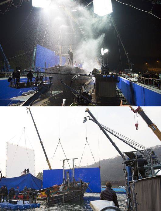 영화의 리얼리티를 최대치로 끌어올리기 위해 거제도, 여수, 마산, 부산 등 한겨울 국내에 수심이 가장 깊은 바다를 찾아 70% 이상의 해상촬영을 감행한 것은 물론, 국내 최초로 두 개의 짐벌을 움직이면서 수조에 물을 채워 넣는 방식의 촬영을 시도했다. 또한, 실감나는 안개를 만들기 위해 특수 스모그로 지상의 세트장을 채운 뒤 특수 카메라로 촬영해 수중과 같은 효과를 내는 '드라이 포 웨트' 기법을 적용했다.