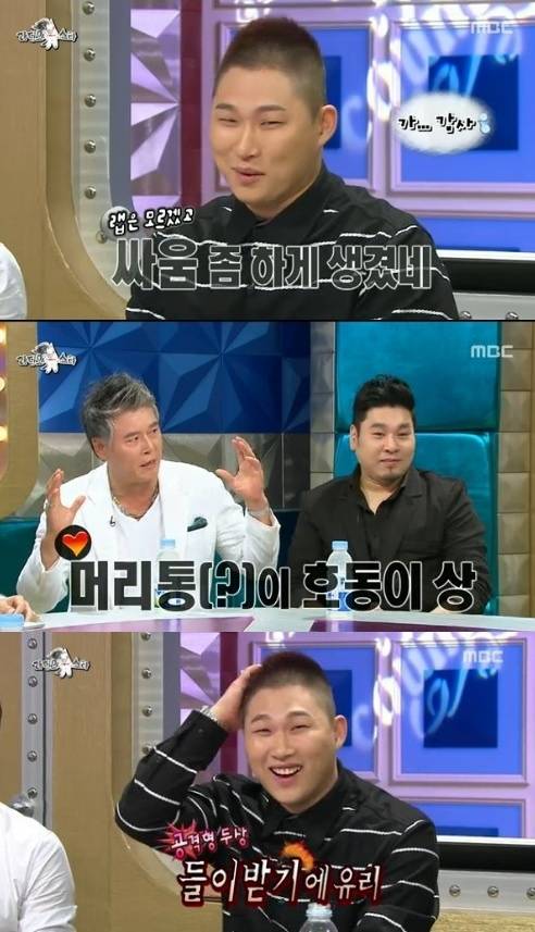 배우 이동준이 래퍼 스윙스의 외모에 돌직구를 날렸다.지난 16일 방송된 MBC '황금어장-라디오스타'에는 '전설의 주먹2' 특집으로 이동준, 레이먼킴, 이재윤, 스윙스가 출연해 거침없는 입담을 뽐냈다.이날 '라디오스타' MC들이 이동준에게 "래퍼 스윙스 아냐?"고 질문하자 그는 "사실 모른다"고 솔직하게 답했다.이어 이동준은 "근데 싸움은 좀 하게 생겼다. 눈매도 그렇고 머리통이 강호동 상이다"고 밝혀 스윙스를 당황하게 만들었다.이에 MC 김구라는 "두상이 위로 봉긋하다. 들이 받기 좋은 것 같다"고 이동준의 말에 동의해 웃음을 자아냈다.['라디오스타' 이동준 스윙스 외모 언급, 사진=MBC '라디오스타' 방송 캡처]