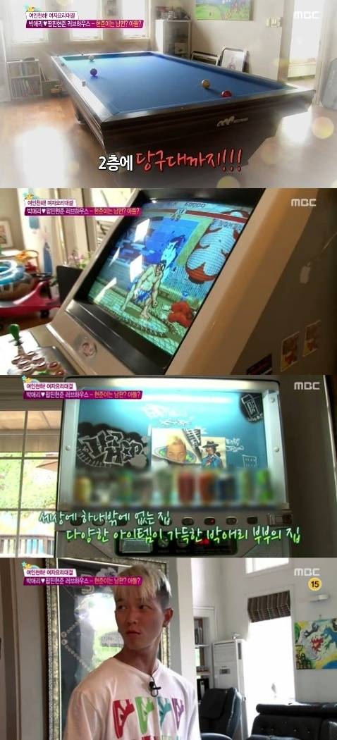 팝핀현준 박애리 부부의 집이 공개됐다.지난 16일 오전 방송된 MBC '기분 좋은날'에는 팝핀현준 박애리 부부가 출연해 4살된 딸 남예술 양과 자신들의 러브하우스를 공개해 눈길을 끌었다.이날 공개된 팝핀현준 박애리 집에는 당구대와 장난감 로봇, 오락기 등 다양한 놀이 아이템이 구비돼 있어 관심을 모았다.특히, 거실에는 자판기가 설치돼 있어 놀라움을 자아냈다. 이에 대해 팝핀현준은 "집에 자판기 있는 집이 없으니까 아내에게 우리가 한 번 만들어보자고 했다. 막상 가지고 오니 아내도 좋아하더라"고 말했다.팝핀현준 박애리 집을 본 네티즌들은 "팝핀현준 박애리 집 부럽다", "집이 오락실이 따로 없네", "팝핀현준 박애리 집 공개 남자들의 로망", "팝핀현준 박애리 집에 있으면 심심하지 않겠다", "팝핀현준 박애리 집에 놀러가고 싶어" 등의 반응을 보였다.[팝핀현준 박애리 집 공개, 사진=MBC '기분 좋은날' 방송 캡처]