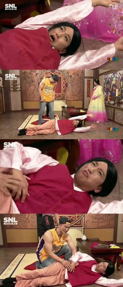 유세윤이 최자 지갑으로 빙의했다.지난 19일 방송된 케이블채널 tvN 'SNL코리아5'에는 힙합듀오 다이나믹듀오(최자 개코)가 호스트로 출연해 웃음을 선사했다.이날 'SNL코리아' 코너 '박수무당'에서 유세윤은 빙의 전문 무당으로 변신해 최자의 연애점을 봐주겠다고 밝혔다.이에 최자는 "나는 하나도 궁금하지 않다"며 유세윤을 만류했다. 하지만 유세윤은 "자네 미래를 보고 왔는데도 잘 모르겠다. 어떻게 된거야"라고 물었고, 최자는 "이거 아까 안 하기로 하지 않았냐"며 당황하기 시작했다.이때 유세윤은 바닥에 누워 몸을 반으로 접어 최자 지갑에 빙의해 폭소를 자아냈다. 최자 지갑으로 빙의한 유세윤은 "저는 최자 지갑입니다. 왜 날 버리셨어요? 왜 날 일부러 펼쳐두고 가셨어요? 왜 저한테 스티커를 붙여놨어요?"라고 말했다.그러자 최자는 "미안하다!"고 외치며 고승덕 전 서울시교육감 후보 기자회견을 패러디 했다. 이어 최자는 유세윤을 끌어안은 채 "내가 널 버린 게 아니야. 두 번 다시 널 잃어버리지 않을게"라고 약속했다.['SNL코리아' 유세윤 최자 지갑 빙의, 사진=tvN 'SNL코리아5' 방송 캡처]