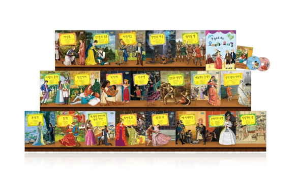 '명화로 보는 음악 동화'는 예술 감상 교육 전집으로 초∙중등 교과서에 수록된 총 20개의 오페라∙뮤지컬 작품을 재미있는 동화로 풀어냈다.