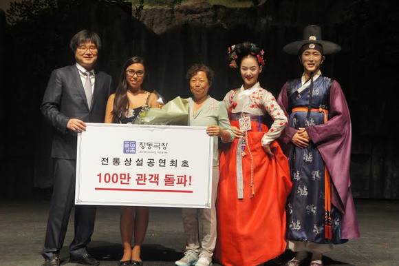 정동극장(극장장 정현욱)은 7월 20일(일), 전통상설공연 최초로 관객 100만 명을 돌파했다. 전통의 대중화와 세계화, 명품화를 위해 1997년부터 17년간 전통공연의 명맥을 지켜온 성과이다. 이와 관련, 100만 번째 관객에게 면세점 상품권 30만원권과 호텔 2인 식사권 증정 이벤트를 진행했다.