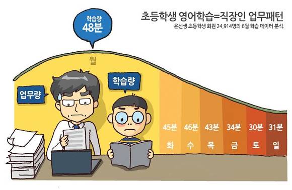 직장인들에게 월요일은 회의와 업무량이 많아 다른 요일에 비해 피로도가 높은 날로 꼽힌다. 이 같은 패턴이 초등학생 영어학습에서도 유사하게 나타났다.
