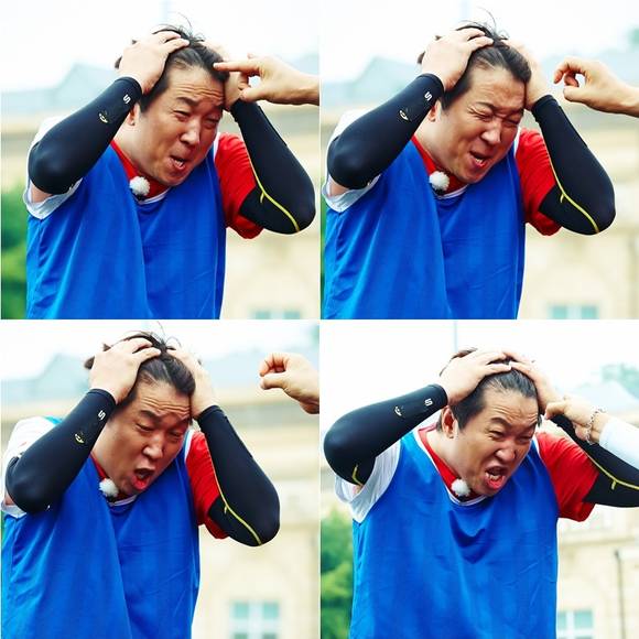 이는 팀 훈련에서 블루팀의 패배로 '딱밤 단두대'에 오른 정형돈의 모습으로 레드팀 전원으로부터 동료들의 딱밤까지 모조리 맞는 수모를 겪게 된 것.