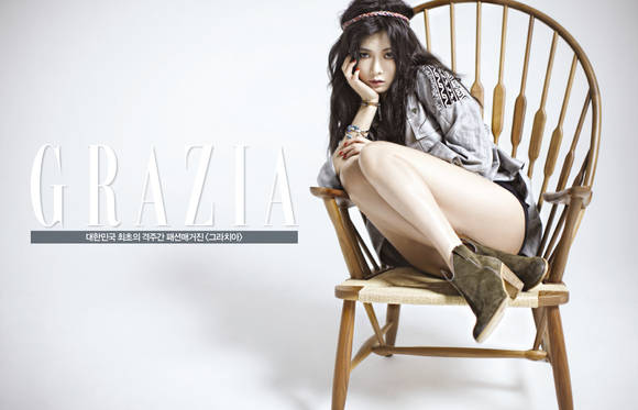 포미닛 현아가 시크한 히피걸로 변신했다.현아가 직접 제안한 '2014년 히피걸' 콘셉트의 그라치아 화보가 공개됐다. 현아는 촬영을 담당한 포토그래퍼가 "오려서 주머니에 넣어다니고 싶다"고 할 정도로 프로페셔널한 표정과 자유분방한 포즈를 선보여 박수를 받았다 .인터뷰에서는 현아는 "산책을 좋아해요. 공원을 돌거나 작은 가게들을 구경해요. 종종 집 근처 배드민천장에서 회사 식구들과 배드민턴도 쳐요"라며 소박한 여가생활을 밝혔다.또 다른 취미는 작품감상이다. 현아는 "평소에 사진집을 즐겨 봐요. 현대미술도 좋아하는데 의외죠? 이번 앨범을 준비하면서는 팝아트나 인물이 부각되는 사진 위주로 찾아봤어요. 멋진 이미지들을 한 장 한 장 보고 있으면 시간 가는 줄 모르겠어요"라고 말했다.현아의 화보와 인터뷰는 '그라치아' 35호(7월 20일 발행)에서 만나볼 수 있다. 추후에 그라치아 홈페이지를 통해 만나볼 수 있다.[현아, 사진=그라치아]