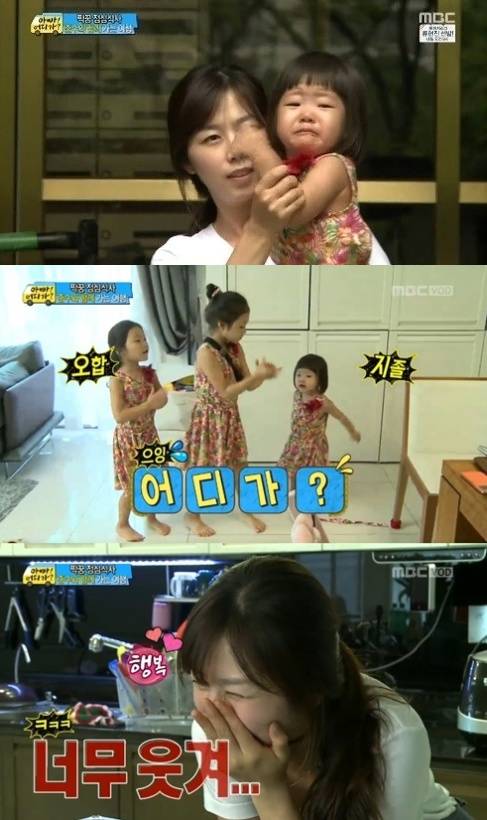 배우 정웅인 아내의 미모가 눈길을 사로잡았다.지난 27일 방송된 MBC '일밤-아빠! 어디가?'에서는 정웅인의 세 딸들이 아빠와 엄마 앞에서 재롱을 부리는 모습이 그려졌다.이날 정웅인은 세 딸 정세윤, 정소윤, 정다윤이 노래에 맞춰 춤을 추자 흐뭇함을 감추지 못하며 딸바보임을 인증했다. 특히, 딸들의 재롱에 행복해하는 정웅인 아내 이지인 씨의 청순한 미모가 네티즌들의 주목을 받았다.정웅인 아내를 본 네티즌들은 "정웅인 아내 이지인 정말 예쁘다", "정웅인 꽃밭에 살구나", "정웅인 아내 미모 보니 딸들이 예쁜 이유 알겠네", "정웅인이 부러워", "정웅인 아내 미모 여배우 뺨치네", "이렇게 애교 많은 딸 보면 절로 배부르겠어" 등의 반응을 보였다.[정웅인 아내, 사진=MBC '아빠 어디가' 방송 캡처]