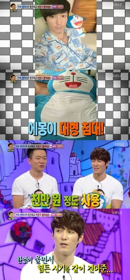 그는 "5년 전부터 저렴한 것부터 모으기 시작했다. 도라에몽 물품에 들어간 비용을 모두 합치면 천 만원 정도 된다"고 밝혀 모두를 놀라게 했다.