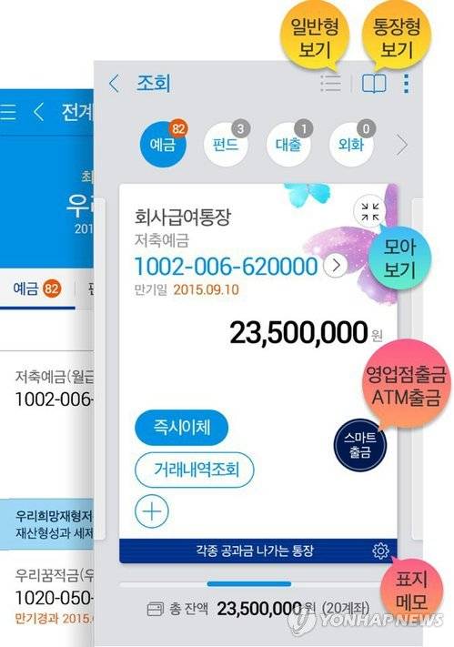 모바일 통장에는 입출금 계좌를 비롯해 예·적금 계좌, 대출 계좌, 펀드·보험 계좌를 무한대로 탑재할 수 있다.