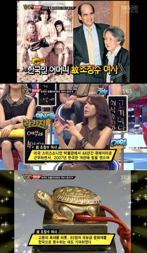배우 전수경(48)과 결혼하는 에릭 스완슨(55) 어머니에 대한 관심이 집중되고 있다.전수경은 9월 22일 서울 힐튼호텔서 4년 열애 끝에 밀레니엄 힐튼호텔 총지배인 에릭 스완슨과 결혼식을 올린다. 두 사람은 2010년 10월 지인의 소개로 처음 만났다.특히, 에릭 스완슨은 한국과 인연이 매우 깊다. 그의 어머니는 민속학자인 故(고) 조창수 여사(1925~2009)로 1949년 미국으로 건너가 워싱턴 주립대에서 민속학 석사 학위를 받았다.미국 스미스소니언 박물관에서 44년간 큐레이터로 근무하면서 2007년 한국관 개관에 힘을 썼으며, 고종의 옥새를 비롯해 93점의 국보급 문화재를 한국으로 환수하는 데 기여했다.조창수 여사는 1994년 탈북한 국군포로 1호 故 조창호(1930∼2006) 육군 중위 누나이기도 하다. 또한, 스미스소니언에 소장된 대한제국 초기 수집품이 지닌 역사적 의의와 미술사적 가치를 담은 해설서 '근대 한국민속ㆍ예술품 도록'을 발간했다.한편, 전수경 에릭 스완슨은 바쁜 스케줄로 인해 신혼여행은 가지 않을 예정이다.[전수경 에릭 스완슨 결혼, 사진=SBS '강심장' 방송 캡처]