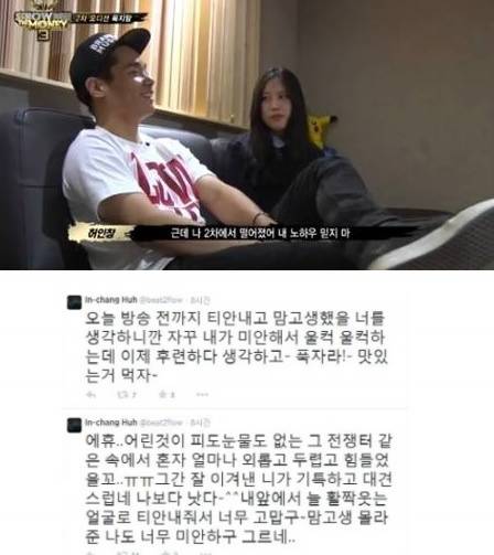 래퍼 허인창이 제자 육지담에 대한 안타까운 심경을 고백했다.육지담은 지난달 31일 방송된 래퍼 서바이벌 Mnet '쇼미더머니3'에서 단독 공연미션 중 가사를 까먹거나 비트를 놓치는 실수로 혹평을 들었다.이에 허인창은 8월 1일 자신의 트위터를 통해 "에휴…어린 것이 피도 눈물도 없는 그 전쟁터 같은 속에서 혼자 얼마나 외롭고 두렵고 힘들었을고.."라며 위로의 말을 남겼다.이어 "그간 잘 이겨낸 네가 기특하고 대견스럽네. 나보다 낫다. 내 앞에서 늘 활짝 웃는 얼굴로 티 안내줘서 정말 고맙고 맘고생 몰라준 나도 너무 미안하고 그렇네"라고 육지담을 향한 애틋한 마음을 드러냈다.또한, 허인창은 "오늘 방송 전까지 티 안내고 맘고생했을 너를 생각하니깐 자꾸 내가 미안해서 울컥 울컥하는데 이제 후련하다 생각하고 푹 자라! 맛있는 거 먹자"라고 남다른 애정을 표현했다.허인창 육지담 응원 글을 접한 네티즌들은 "쇼미더머니 육지담 스승 허인창이 있어 든든하겠다", "허인창 육지담 응원 훈훈해", "쇼미더머니 육지담 앞으로 더욱 분발해라", "허인창 글에 육지담 위로 받았네", "쇼미더머니 육지담 다음엔 더 좋은 무대 보여주길" 등의 반응을 보였다.[허인창 육지담 위로, 사진=Mnet '쇼미더머니3' 방송/허인창 트위터 캡처]