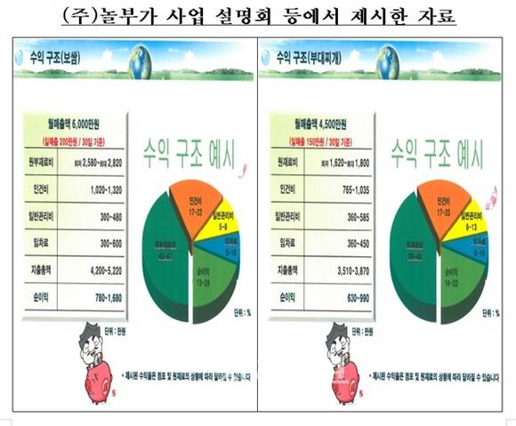 "당신도 창업하면 월 6000만원 매출이 가능합니다"외식 프랜차이즈로 잘 알려진 놀부(대표 김준영)가 가맹점 예상수익을 근거없이 부풀려 가맹희망자들을 모집해 왔던 것으로 드러나 충격을 안겨주고 있다.'놀부보쌈'과 '놀부부대찌개앤드(&)철판구이'등의 영업표지로 외식 가맹사업을 확장해 나가던 놀부는 예상 매출 및 순익 정보를 객관적 근거없이 과장해 정보를 제공해왔다.공정거래위원회에 따르면 놀부는 2011년 1~8월 기간동안 가맹희망자들을 대상으로 한 사업설명회 등에서 가맹희망자들에게 부대찌개의 경우 월 매출 4500만원에 630만~990만원의 순이익이, 보쌈은 월 매출 6000만원에 780만~1680만원의 순이익이 가능하다고 근거없이 부풀린 정보를 제공한 것으로 조사됐다.또 매출액을 산출하면서 상권의 차이 등을 전혀 고려하지 않고 약 5%에 불과한 소수 가맹점의 3개월간 매출액을 기준으로 산정했다.순이익은 고정자산의 감가상각비 및 세금 등 주요 비용항목을 제외, 실제보다 부풀려서 가맹희망자들에게 제시한 것.아울러 놀부는 해당 사업설명회를 진행하는 과정에서 예상매출액과 순이익에 관한 정보를 가맹희망자에게 서면으로 제시해야 함에도 불구하고 발표 형태의 구두로만 설명한 것으로 드러났다.이에 따라 공정위는 "가맹사업법을 위반한 놀부에 시정명령을 내리고, 과태료 200만원을 부과했다"고 밝혔다.◇ 놀부 "이미 3년전 일, 이제와서.. 당혹"하지만 이번 관련 당국의 조치에 놀부 측은 억울하다는 입장을 표명했다. 놀부는 이 모든 일이 2011년에 '이미 시정완료 된 일이라는 점'을 강조했다.놀부 측 한 관계자는 "가맹점을 모집하는 과정에서 다소 부풀려진 점은 인정하나 이미 2011년 당시 공정위가 직권조사를 나와 이미 조사를 받았고, 가맹자들에 대한 자료제공이 미진하다는 지적을 받아 곧바로 시정조치를 완료한 사안이다"라며 "오래전 일이 갑자기 불거져 당혹스럽다"고 토로했다.이어 이 관계자는 "이번 공정위의 시정명령과 과태료가 사실 보면 200만원에 불과하다. 다른 것을 떠나 잘못한 점은 반성하고 앞으로 이번 일을 계기로 발전하는 놀부가 되겠다"고 덧붙였다.