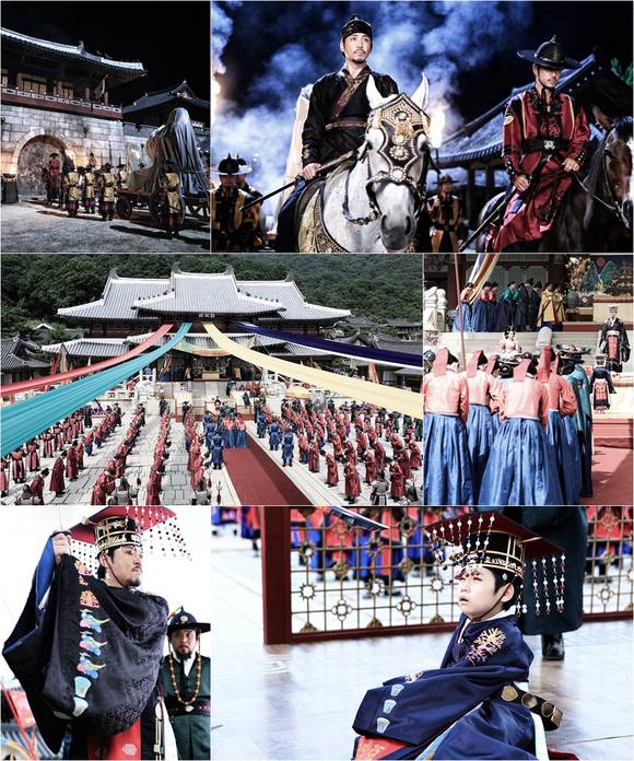 이와 함께 공개된 또 다른 사진 속에는 당장이라도 무슨 일이 생길 것만 같은 분위기의 세자 책봉식이 담겨 있어 심장을 쫄깃하게 만들고 있다. 겁에 질려 다리에 힘이 풀린 듯 주저 앉은 적통왕자 이린의 모습과 섬뜩하고 서늘한 표정으로 칼을 뽑아 든 해종의 모습이 극적인 대비를 이루며 일촉즉발의 긴장감을 전하고 있는 것.