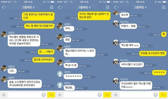 뒤늦게 대화 내용을 확인한 수호는 "형님들.."이라고 반응했다. 민호 역시 대화에 참여해 "소엘 대박, 샤이니월드 보고싶다고 덧붙여 웃음을 자아냈다.