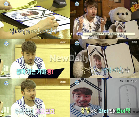 '나혼자산다' 노홍철이 임종 체험을 체험했다.지난 8일 방송된 MBC '나 혼자 산다'에서는 노홍철이 임종체험 수련원을 찾는 모습이 그려졌다.수련원에 도착한 노홍철은 당황한 기색을 감추지 못했다. 가벼운 체험일 것이라는 예상과 달리 임종체험은 '가상 죽음'을 통해 지난 삶을 돌아보고 남은 인생을 새롭게 설계하자는 취지의 힐링 프로그램이었던 것.노홍철은 청소년부터 중년 주부까지 10여 명의 참가자들과 함께 체험을 하게 됐다. 노홍철은 어색함을 무릅쓰고 영정사진을 찍고, 유언장을 작성하는 등 자신의 가상 죽음을 성실히 준비했다.영정사진을 찍은 노홍철은 "항상 장례식장 가면 어두운 표정이나 무표정이었다. 그걸 보면서 나는 영정사진을 활짝 웃고 싶다는 생각을 했다"고 밝혔다.이어 노홍철은 자신의 묘비명을 '좋아 가는 거야. 뿅'이라고 적으며 "가장 많이 했던 말이고 후회 없이 가고 싶다는 마음을 표현했다. 미련 없이 한 방에 뿅!"이라고 설명했다.[노홍철 임종 체험, 사진=MBC '나혼자산다' 방송 캡처]