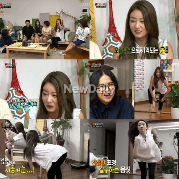 '인간의 조건' 윤보미가 우랑우탄 흉내로 반전매력을 뽐냈다.지난 9일 방송된 KBS 2TV '인간의 조건'에서는 '피부&탈모 정복하기' 미션을 체험하는 김숙, 김지민, 김신영, 김영희, 박은지, 에이핑크 윤보미 등 여성 멤버들의 모습이 그려졌다.이날 '인간의 조건' 윤보미는 멤버들과 서로 인사를 나누던 중 김신영과 친분이 있음을 밝혔다. 김신영이 "신인 때 오랑우탄 개인기로 다 살렸다"고 말하자 주위에서 "아, 그 친구야~"라고 놀라워 했다.이어 윤보미는 오랑우탄 개인기를 보여줄 수 있냐는 멤버들의 요구에 "언제든지 보여줄 수 있다"며 자리에서 벌떡 일어났다.동선까지 확인한 윤보미는 엉덩이를 실룩거리며 오랑우탄을 완벽하게 재현해 폭소를 자아냈다. 특히, 김숙은 윤보미의 오랑우탄 흉내에 "지금 이 순간부터 팬입니다"라고 매우 흡족해했다.[인간의 조건 윤보미, 사진=KBS2 '인간의 조건' 방송 캡처]