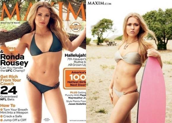 미녀챔피언 론다 로우지의 비키니 화보가 화제다.이는 이종격투기 선수 송가연의 6kg 감량 소식과 함께 그녀의 롤모델인 UFC 여성부 밴텀급 챔피언 론다 로우지에 대한 관심이 쏠리고 있는 것.공개된 사진 속 론다 로우지는 운동으로 만들어진 탄탄한 복근과 군살 하나 없는 매끈한 보디라인을 자랑한다.송가연이 롤모델로 꼽은 론다 로우지는 세계 최고의 여성 MMA 선수로 현재 UFC 여성 벤텀급 챔피언이자 올림픽 유도 종목에서 미국에게 첫 메달을 안겨준 메달리스트이기도 하다.유도 선수 은퇴 이후 종합 격투기 선수로 전향한 론다 로우지는 유도 기술을 바탕으로 그래플링 능력이 뛰어난 UFC 강자다.앞서 송가연은 한 매체와의 인터뷰에서 "론다 로우지는 그래플링 뿐 아니라 복싱 능력이 출중하다. 로우지를 본받고 싶다"고 각오를 밝힌 바 있다. 송가연은 오는 17일 서울 올림픽 홀에서 열리는 '로드FC 17'에서 일본의 에미 야마모토와 맞붙는다.[론다 로우지 비키니 화보, 사진=맥심]