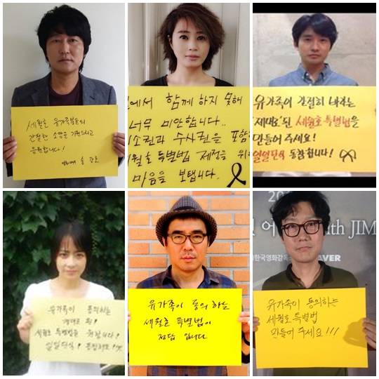 영화 '놈놈놈', '달콤한 거짓말'의 김지운 감독과 '수상한 그녀' 황동혁 감독 역시 "유가족이 동의하는 세월호 특별법이 정답입니다", "유가족이 동의하는 세월호 특별법 만들어주세요"라는 메시지를 전했다.