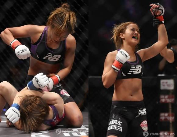 TKO승으로 로드FC 데뷔전을 성공적으로 치른 송가연(21, 팀 원)이 승리 소감을 밝혔다.이종격투기 선수 송가연은 18일 자신의 페이스북을 통해 "짜릿하다. 다 필요없다. 제 사람들에게 너무 감사드립니다"라는 글을 게재했다.송가연 TKO승 소감을 접한 네티즌들은 "송가연 TKO승 최고!", "송가연 데뷔전 승리 진심으로 축하해요", "송가연 TKO승 통쾌한 승부였다", "송가연 앞으로 승승장구하길~", "송가연 TKO승 자랑스럽다", "송가연 데뷔전 정말 멋지더라" 등의 반응을 보였다.앞서 송가연은 17일 서울 올림픽공원 올림픽홀에서 열린 '로드FC 017' 스페셜매치업에서 일본 에미 야마모토(33, 모리짐)를 상대로 1라운드 2분22초 만에 TKO 승을 거뒀다.이날 송가연은 경기 초반부터 에미 야마모토에게 펀치 세례를 퍼부으며 기선제압에 나섰다. 이어 가드 포지션을 점한 뒤 파운딩을 지속적으로 날렸고, 심판은 에미 야마모토가 더 이상 경기를 진행하기 어렵다고 판단해 TKO를 선언했다.[송가연 TKO승, 사진=연합뉴스]