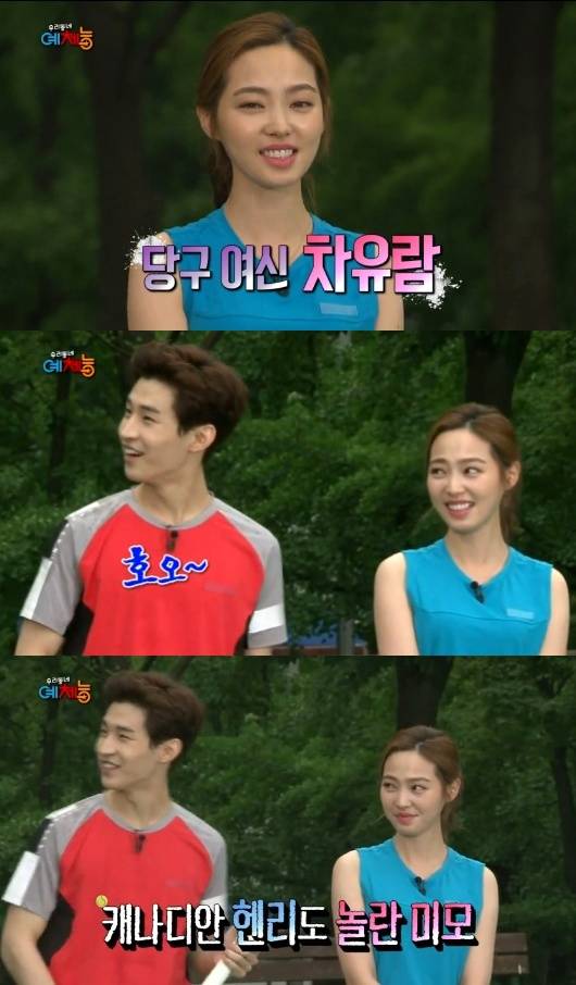 헨리가 당구여신 차유람의 미모를 극찬했다.지난 19일 방송된 KBS 2TV '우리동네 예체능'(이하 '예체능')에서는 일곱 번째 종목인 테니스 편의 첫 번째 이야기가 전파를 탔다.이날 '축구' 편을 함께 했던 강호동, 정형돈, 이규혁, 양상국이 자신들의 테니스 파트너를 찾아갔다. 이 과정에서 서로 다른 4팀의 복식조가 탄생됐지만 모두 다른 색깔로 시종일관 웃음을 안겼다.이규혁은 생각지도 못한 파트너 차유람을 만나 웃음꽃이 활짝 피기도 하고, 정형돈은 가장 만나고 싶지 않았던 파트너 성시경과 대면하며 "그냥 스쳐 지나가면 안될까"하며 울상을 지었다.특히, 모두가 한 자리에 모인 자리에서 차유람의 등장에 남자 멤버들은 환호를 보냈다. 헨리는 차유람을 보고 "정말 예쁘다"라며 호감을 드러냈고, 파트너인 이규혁은 뿌듯한 표정을 지었다.차유람은 "초등학교 시절 전라남도 대표로 소년체전에 출전했다"고 깜짝 고백해 놀라움을 자아냈다. 이에 성시경이 스윙 시범을 요구했고, 차유람은 선뜻 시범을 보였다. 차유람의 스윙에 '예체능' 멤버들은 "샤라포바도 울고 가겠다", "화보 같다"며 칭찬을 아끼지 않았다.[헨리 차유람 미모 극찬, 사진=KBS2 '우리동네 예체능' 방송 캡처]