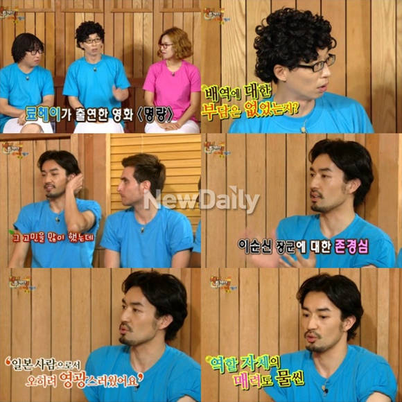 일본인 배우 오타니 료헤이가 영화 '명량'에 출연한 소감을 밝혔다.지난 21일 방송된 KBS 2TV '해피투게더 시즌3'에서는 '뜨거운 남녀' 특집으로 요즘 연예계에서 가장 핫한 6인방 최여진, 클라라, 걸스데이 유라, 샘 오취리와 에네스 카야, 오타니 료헤이가 출연해 솔직한 입담을 과시했다.이날 유재석은 오타니 료헤이에게 "영화 '명량'에서 일본인이지만 이순신 장군의 무도를 흠모에서 조선 편에 서는 준사 역을 맡았는데 배역에 대한 부담은 없었는지?"라고 물었다.이에 오타니 료헤이는 "고민을 많이 했다. 우선 '명량'이 한국에서 개봉하는 영화고 이순신 장군에 대한 존경심도 있었다. 일본 사람으로서 오히려 영광스러웠다"며 "역할 자체의 매력도 좋았고 하고 싶었다. 지금 주변의 우려를 종종 접하는데 전혀 문제없다"고 답했다.또한, 오타니 료헤이는 "아버지가 역사에 대해 잘 아신다. 내게 '가벼운 마음으로는 절대 하지 마라'는 조언을 해주셨다"고 말해 감탄을 자아냈다.[오타니 료헤이 '명량' 출연 소감, 사진=KBS2 '해피투게더' 방송 캡처]