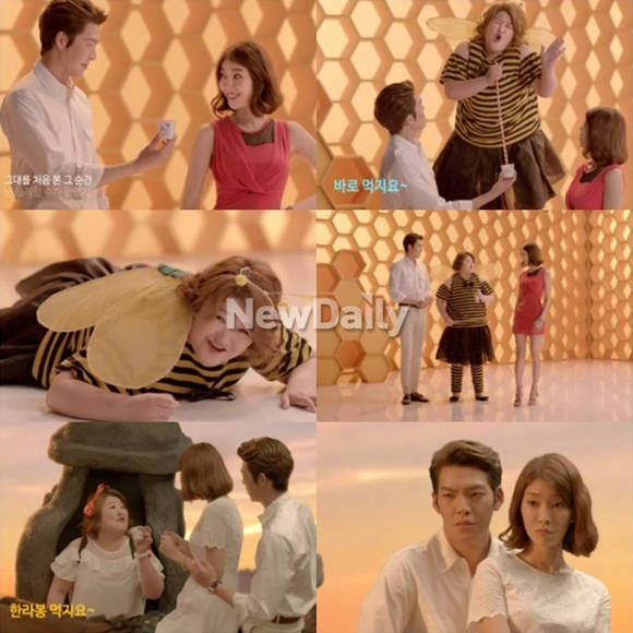 개그우먼 이국주의 식탐송에 배우 김우빈이 빵 터졌다.최근 동영상 사이트 유튜브에 '이국주 식탐송'이라는 제목으로 영상이 올라왔다. 해당 영상은 김우빈과 이국주가 함께 촬영한 광고CF로 온라인을 중심으로 급속도로 퍼지고 있다.공개된 영상 속 이국주는 자신의 '식탐송'을 개사해 폭소를 유발했다. 특히, 이국주의 능청스러운 연기에 김우빈을 비롯한 촬영 스태프들은 포복절도하며 수차례 촬영이 중단되는 사태가 발생되기도 했다.이국주는 광고 현장에서 박진영의 '허니'와 최성원의 '제주도의 푸른밤'을 식탐송으로 개사해 이목을 끌었다. '허니'는 "그대를 처음 본 그 순간~ 난 바로 먹지요~"라고 개사했으며 '제주도의 푸른밤'은 "떠나요~ 둘이서~ 제주도~ 한라봉 먹지요~"로 개사해 네티즌들의 뜨거운 반응을 이끌어냈다.한편, 이국주의 식탐송은 개그맨들의 일반적인 정해진 유행어를 매번 반복하는 것이 아니라 매번 색다른 레퍼토리를 만들어 시청자들에게 큰 재미를 선사하고 있다.[이국주 식탐송 김우빈 촬영중단, 사진=유튜브 영상 캡처]