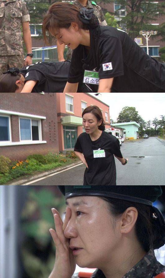 '진짜사나이' 여군특집에 참여한 배우 김소연의 허당 체력이 공개된다.24일 방송될 MBC '일밤-진짜 사나이' 여군특집에서는 그동안 공개되지 않았던 출연자들의 반전 매력이 드러난다.김소연은 드라마 '아이리스' 등을 통해 카리스마 넘치는 모습과 함께 화려한 액션 연기를 선보이며 여전사 이미지로 각인됐다. 그러나 이번 여군특집에서 숨겨졌던 그녀의 허당 체력이 낱낱이 공개된다. 윗몸 일으키기, 팔굽혀펴기, 뜀걸음까지 예상치 못하게 체력검사 3개를 모두 불합격해 멤버들을 놀라게 했다.거침없는 말솜씨와 함께 강인한 이미지를 보였던 큰언니 라미란은 훈련 때마다 눈물을 흘려 '울보 미란'이 됐다. 이기자 부대 출신인 남편 유준상의 특훈을 받고 온 홍은희는 군생활을 가장 빨리 이해했지만, 체력이 따라주지 않아 고생이 끊이지 않았다.지나와 맹승지는 역대 최고의 어리바리 군인이 될 전망이다. 지나는 헨리 못지않은 엉뚱한 행동과 말투로 멤버들을 안절부절 못하게 하는가 하면, 어디로 튈지 모르는 시한폭탄 맹승지는 눈물겨운 시련의 연속을 맛봤다. 쇼트트랙 선수 박승희는 역시 금메달리스트답게 모든 면에서 맹활약을 펼치며 에이스다운 면모를 보였다.'진짜사나이' 여군특집은 오는 24일 오후 6시 30분 방송된다.[진짜사나이 여군특집, 사진=MBC]