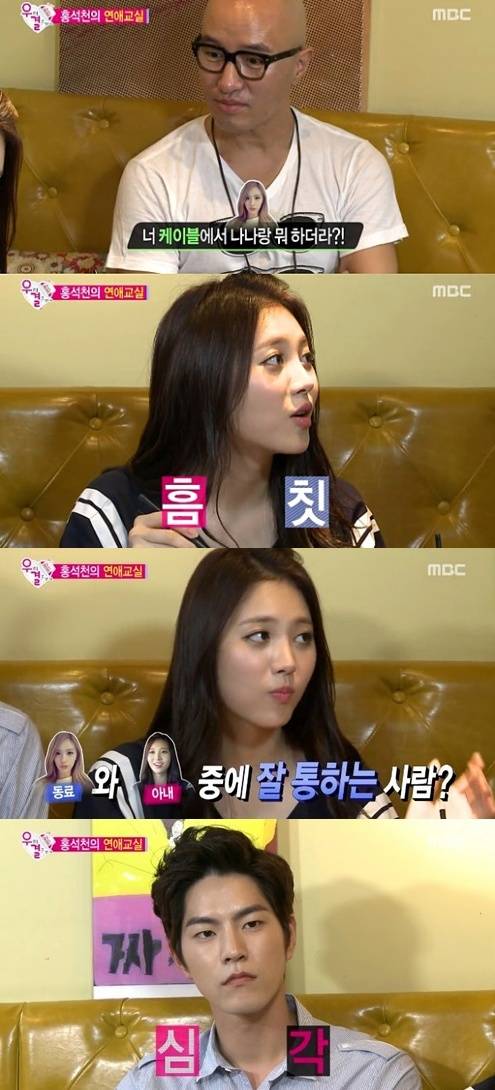 '우리결혼했어요' 홍종현이 유라와 나나를 두고 고민에 빠졌다.지난 23일 방송된 MBC '우리 결혼했어요4'(이하 '우결')에서는 홍종현 유라 부부를 위한 홍석천의 원포인트 레슨 두 번째 이야기가 그려졌다.이날 홍석천은 홍종현에게 케이블TV 프로그램에서 MC 호흡을 맞춘 나나에 대해 "나나랑 사이 좋더라. 뭔가 썸띵이 느껴졌다"고 말했다.이어 홍석천이 "나나와 유라 중 잘 통하는 사람은 누구냐"고 묻자 홍종현은 바로 대답하지 못하고 심각하게 고민하는 모습을 보였다.이에 답답한 홍석천은 "눈치가 없다. 유라라고 대답하면 될 걸 심각하게 고민하는 게 뭐냐. '와이프가 좋니, 초딩 동창이 좋니' 이런 고민하는 거다"고 타박해 웃음을 자아냈다.[우리결혼했어요 홍종현, 사진=MBC '우결' 방송 캡처]