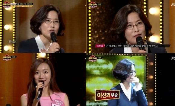 '히든싱어3'가 사상 최초 7%대를 돌파하며 놀라운 저력을 과시했다.시청률조사회사 닐슨코리아의 집계에 따르면 지난 23일 방송된 JTBC '히든싱어3' 이선희 편은 7.181%(전국 유료 방송 가구)를 기록했다.이는 동시간대 방송된 MBC '세바퀴(6.7%), KBS2 '인간의 조건(5.6%), '그것이 알고싶다'(6.3%) 보다 높은 기록으로 지상파 프로그램을 제치고 동시간대 1위를 차지했다.앞서 16일 방송된 '히든싱어3' 이선희 스페셜 편은 4.3%의 높은 시청률을 기록한 바 있다. 이 수치 역시 '히든싱어2' 1회 임창정 편이 기록한 3.8%보다 0.5% 상승한 수치로 화제를 모았다.재미와 감동을 다 잡으며 순조롭게 출발한 '히든싱어3'가 종편의 한계를 뛰어넘고 이 기세를 몰아 10% 돌파라는 대기록을 세울 수 있을지 이목이 집중된다.한편, 이날 '히든싱어3'에서는 올해로 데뷔 30주년을 맞은 이선희가 모창 능력자들과 대결을 펼쳐 우승을 차지했다.[히든싱어3 이선희, 사진=JTBC '히든싱어3' 방송 캡처]