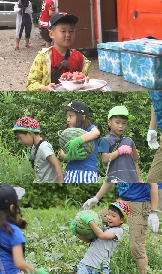 '아빠어디가' 윤민수의 아들 윤후가 '윤 매니저로' 변신한다.24일 방송될 MBC '일밤- 아빠! 어디가?'(이하 '아빠어디가')에서는 전북 진안 수박 마을로 여행을 떠난 가족들이 마을의 특산품인 수박을 팔기 위해 직접 일일 카페를 차리는 장면이 그려진다.이날 '아빠어디가' 가족들은 두 팀으로 나누어 '일일 카페'를 연다. 이들은 수박화채, 수박빙수, 수박주스를 만들어 사람들에게 대접하며 직접 '수박 홍보'에 나선다. 아빠들은 직접 화채와 주스를 만들고, 아이들은 열심히 땀 흘리며 만든 음료를 나르며 즐거운 시간을 보냈다는 후문이다.특히, 근처 휴양림으로 원정 카페를 차린 팀은 쏟아지는 손님에 환호를 내질렀다. 그 중 윤후는 투철한 서비스 정신으로 고객 중심 서비스를 제공하며 새로운 '윤 매니저' 캐릭터의 탄생을 예고했다.MBC '아빠 어디가'는 24일 오후 4시 50분 방송된다.['아빠어디가' 윤후, 사진=MBC]