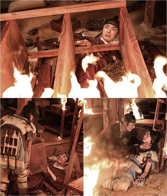 '야경꾼일지' 정일우와 고성희가 화염에 휩싸여 위험천만한 위기의 상황에 봉착한 모습이 포착됐다.