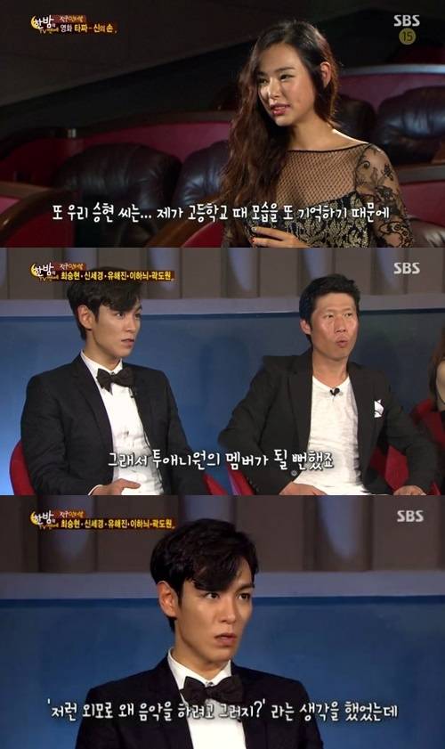 배우 이하늬가 YG 연습생 출신이라는 사실이 밝혀졌다.지난 27일 방송된 SBS '한밤의 TV연예'에서는 영화 '타짜2' 최승현, 신세경, 이하늬, 유해진, 곽도원 등 배우들의 직구인터뷰가 진행됐다.이날 이하늬는 최승현에 대해 "고등학교 때 모습을 기억하는데 너무 섹시하게 잘 자랐다. 배우 대 배우로 만나서 좋았다"고 말했다.이에 다른 배우들이 이하늬와 최승현의 인연에 대해 묻자 최승현은 "사실 이하늬가 YG 연습생 생활을 했다"고 털어놨다.이어 "2NE1 멤버가 될 뻔했다. 저런 외모로 왜 음악을 하려고 하지 생각했는데 곧바로 미스코리아가 되더라"라고 덧붙였다.[이하늬 YG 연습생 출신, 사진=SBS '한밤의 TV연예' 캡처]