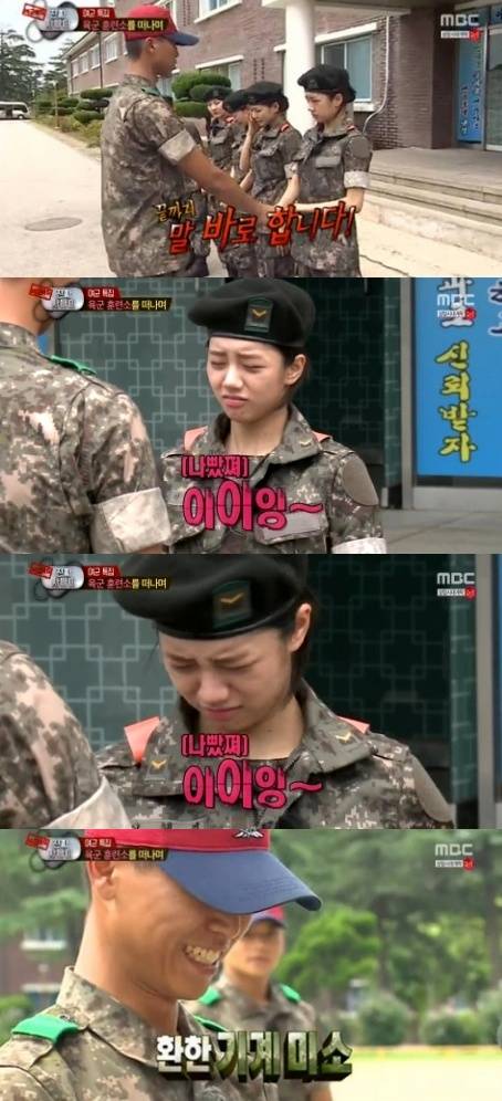 걸그룹 걸스데이 혜리의 특급 애교에 터미네이터 분대장이 사르르 녹았다.31일 방송된 MBC '일밤-진짜사나이' 여군특집에서는 홍은희, 김소연, 라미란, 지나, 혜리, 맹승지, 박승희가 육군훈련소에서 훈련을 받는 두 번째 이야기가 그려졌다.이날 퇴소식에서 혜리는 소대장과 분대장에게 눈물을 쏟으며 작별인사를 건넸다. 이에 터미네이터 분대장 곽지수는 "말 바로 합니다"라며 끝까지 엄한 모습을 보였다.그러자 혜리는 속상한 듯 "이이잉~"이라고 기습 앙탈 애교를 부렸고, 분대장은 순간적으로 잇몸을 드러내며 환한 기계미소를 지었다.방송을 접한 네티즌들은 "역시 분대장도 남자였어", "라미란이 했으면 큰일 났을거야", "진짜사나이 여군특집 다음주가 기대된다", "혜리 완전 귀여워", "나라도 혜리 애교에 무장해제될 듯", "진짜사나이 여군특집 꿀잼!" 등의 반응을 보였다.['진짜사나이' 혜리 애교, 사진=MBC '진짜사나이 여군특집' 방송 캡처]