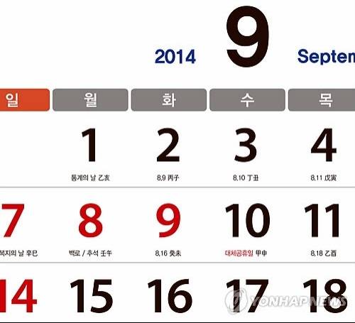 대부분의 관공서와 학교, 은행들은 5일간의 긴 연휴에 들어간다.공휴일인 추석 전날 7일이 일요일과 겹치자 평일인 10일을 휴일로 삼았기 때문이다.