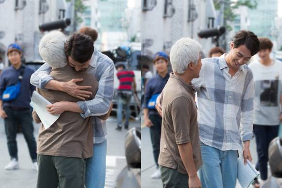 다정한 포옹을 나누고 있는 조인성과 양익준의 '반전' 있는 모습이 포착됐다.