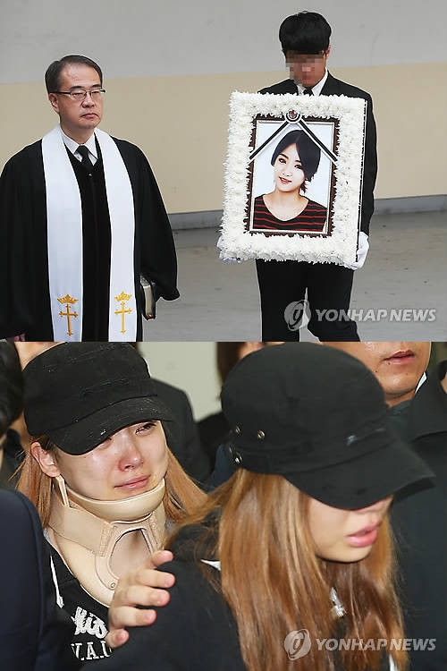 레이디스코드 멤버 은비(22, 본명 고은비)의 마지막 가는 길에 주니와 애슐리가 오열했다.지난 3일 교통사고로 사망한 故 은비의 발인이 5일 오전 7시30분 서울 성북구 고려대학교 안암병원에서 엄수됐다.이날 은비 발인식에는 사고 당시 함께 차에 타고 있던 레이디스코드 멤버 주니와 애슐리가 참석해 하염없이 눈물을 쏟아 안타까움을 자아냈다. 특히, 이들은 지인의 부축을 받고 걸어야하는 부상에도 은비의 마지막 가는 길을 배웅하며 깊은 슬픔을 표출했다.故 은비의 어머니는 빈소에서 눈물을 흘리면서도 "은비가 저렇게 예쁘게 웃고 있으니 울지 말자", "은비가 리세를 꼭 지켜줄 것"이라고 오히려 조문객을 위로하기도 했다.한편, 故 은비는 서울 양재동 소재 서울추모공원에서 화장된 후 분당스카이캐슬 추모공원에 안치된다.[은비 발인, 사진=연합뉴스]