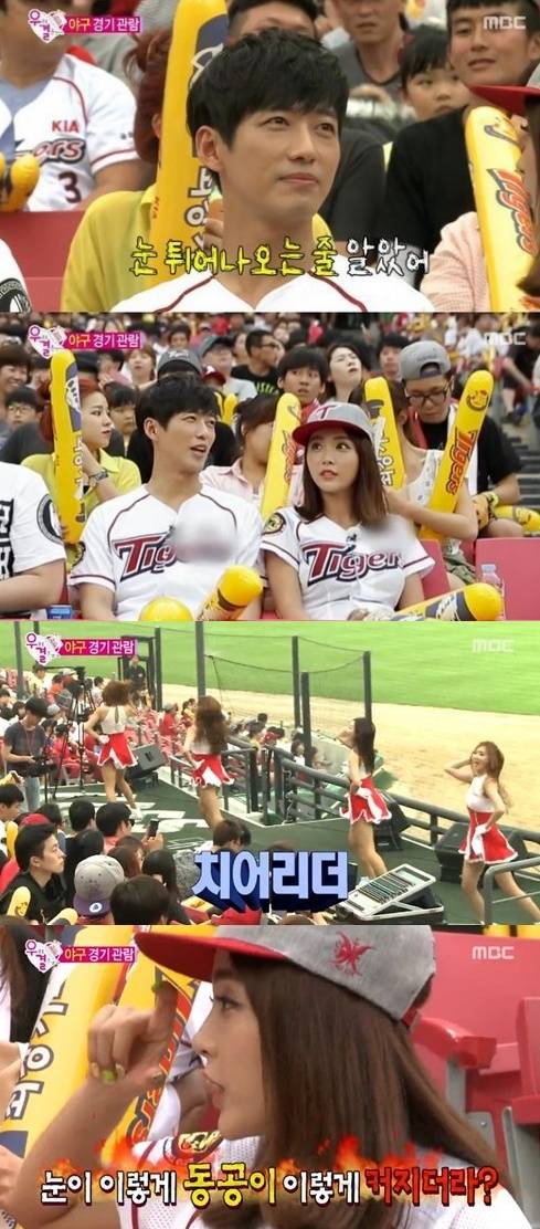 '우리결혼했어요' 남궁민이 치어리더에게 시선을 빼앗기자 홍진영이 버럭했다.지난 6일 방송된 MBC '우리 결혼했어요4'(이하 '우결')에서는 남궁민과 홍진영이 야구장 데이트를 즐기는 모습이 그려졌다.이날 광주구장을 찾은 남궁민과 홍진영은 기아 타이거즈 시구와 시타를 끝내고 관중석에 앉아 열띤 응원을 펼쳤다.특히, 남궁민은 치어리더가 등장하자 눈을 떼지 못하고 계속 쳐다봤다. 이에 홍진영은 "눈을 어디에 둘 줄 모른다. 앞에 봐라"고 지적했다. 하지만 남궁민의 눈은 치어리더를 향해 있었다.치어리더들이 퇴장한 후 홍진영이 "눈 동공이 이렇게 커지더라. 눈이 튀어나오는 줄 알았다"고 타박하자 남궁민은 "나도 모르게 그랬다. 본능인가봐"라고 솔직하게 밝혀 웃음을 자아냈다.[우리결혼했어요 남궁민, 사진=MBC '우결' 방송 캡처]