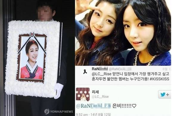 걸그룹 레이디스코드 멤버 권리세(23)의 발인이 엄수된 가운데 과거 SNS에 남긴 글이 가슴을 더욱 뭉클하게 하고 있다.권리세는 "맏언니 입장에서 가장 챙겨주고 싶고 혼자 두면 불안한 멤버가 누구인가요?"라는 팬의 트위터 질문에 곧바로 "은비"라고 답했다.이 같은 권리세의 생전 발언이 알려지면서 연이어 세상과 작별한 故 고은비와 권리세의 죽음에 네티즌들의 안타까움이 더하고 있다.故 권리세의 발인이 9일 오전 9시 30분 서울시 성북구 안암동 고려대학교 안암병원 장례식장에서 치러졌다. 이날 발인식에는 가족을 비롯해 레이디스코드 멤버 애슐리, 이소정, 주니와 소속사 식구들, MBC '위대한 탄생' 동료들이 참석했다.故 권리세는 화장된 후 가족들과 일본으로 건너가 일본에 있는 가족, 친지, 친구들과 다시 한 번 장례를 치룬 다음 그곳에서 안치된다.한편, 레이디스코드는 지난 3일 오전 1시 30분께 대구에서 스케줄을 마친 후 서울로 이동하던 중 용인시 기흥구 영동고속도로 인천방향 신갈분기점 부근에서 차량이 전복되는 사고를 당했다.이 사고로 멤버 고은비가 안타깝게 사망해 지난 5일 장례를 치렀으며, 중태에 빠졌던 권리세는 의료수술과 치료를 받았으나 7일 오전 10시 10분경 끝내 세상을 떠났다. 상악골 부분접합 수술을 받은 이소정은 회복 중이며 애슐리와 주니는 경미한 부상을 입었다.[故 권리세 발인, 사진=연합뉴스]