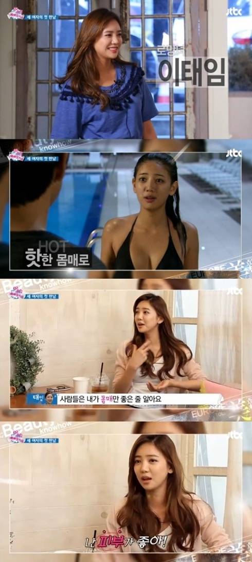 배우 이태임이 몸매에 이어 피부에 대한 자신감을 드러냈다.지난 11일 방송된 JTBC '미친(美親) 유럽여행-예뻐질지도'(이하 '예뻐질지도')에서는 아름다움의 비밀을 찾기 위한 유럽 여행을 준비하는 미녀 3인방 박정아, 서지혜, 이태임의 이야기가 그려졌다.이날 이태임은 "핫한 몸매로 남성들의 마음을 사로잡는 로망녀"라고 소개됐다. 이후 인터뷰에서 이태임은 "사람들은 내가 몸매만 좋은 줄 안다"고 운을 뗐다.이어 이태임은 "사실 나는 피부도 좋다. 그렇다고 '내가 피부가 좋아요'라고 말을 할 수도 없고.."라고 귀여운 투정을 부렸다.[이태임, 사진=JTBC '예뻐질지도' 방송 캡처]