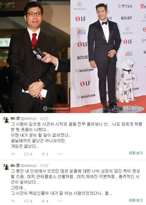 [강병규 이병헌 이지연 사건 저격, 사진=뉴데일리 DB/ 연합뉴스/ 강병규 트위터]